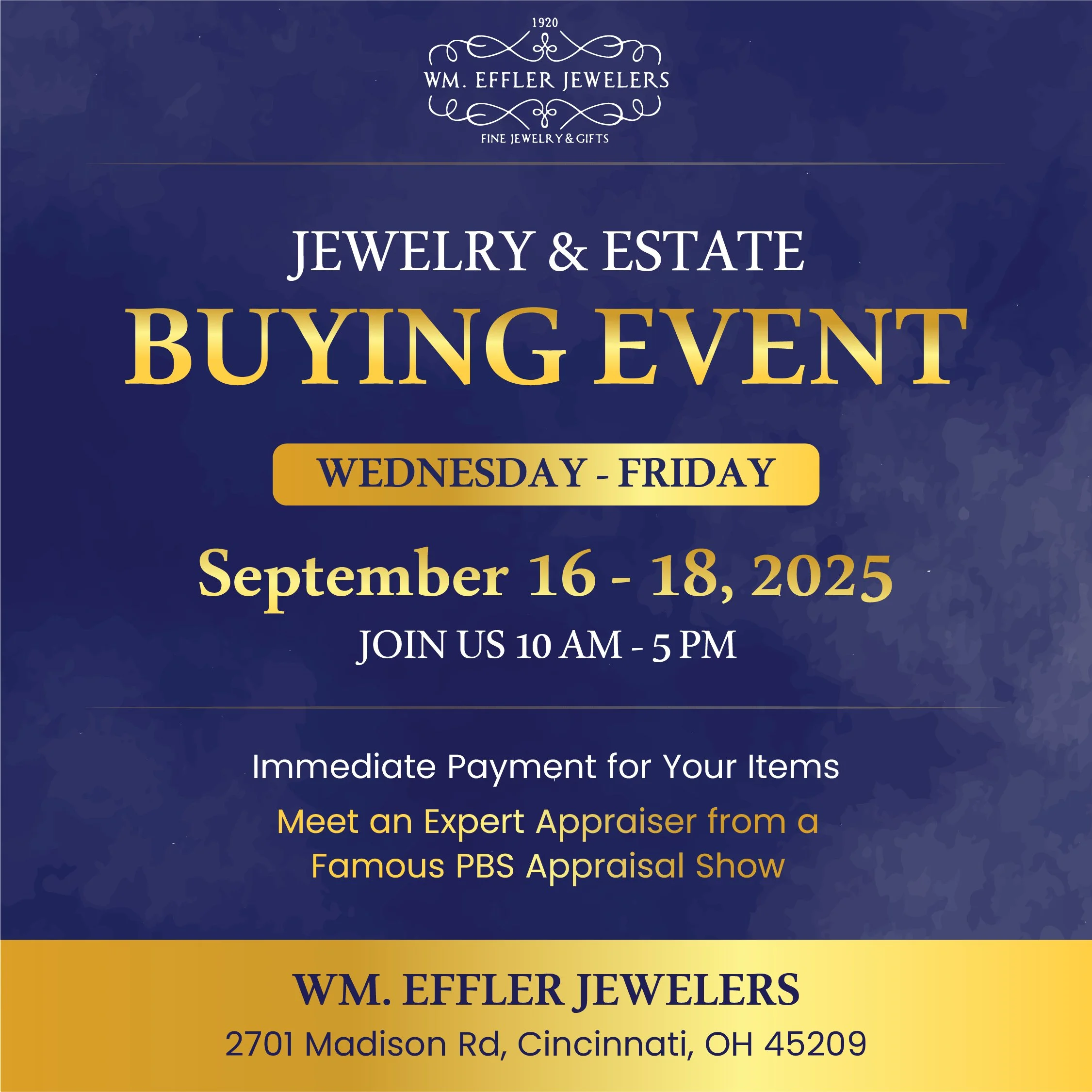 While gold is still at record breaking highs, it’s time for the experts to come in and help you out! Best knowledge…best offer with store credit options! See what your options are with our family owned & well trusted Estate Buyers, hosted at your neighborhood jeweler! This event will only be here for a few days, so make sure to start gathering things you can’t pass down. We are here to help!